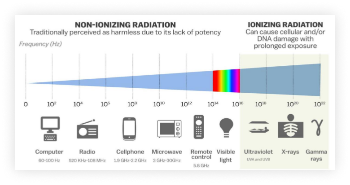 By contrast, low frequency, non-ionizing radiation does not have enough energy to break chemical bonds or cause direct damage to cells. Wireless or Mobile radiation come in this category. So, all wireless or mobile radiation must be safe, right? Wrong.