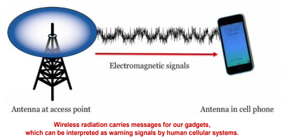 Non-Thermal Effects are due to their constant waveform. Wireless radiation carries messages for cellular systems of both, our gadgets and our bodies. While our devices work well with these messages, a human brain interprets them as warning signals about potential danger of exposure to high frequency radiation. Despite the fact that the wireless or mobile radiation lack the energy and intensity to harm our cells directly (non-ionizing nature), our biological response to this false alarm is still triggered as if we were exposed to a real threat (ionizing radioactivity). This can exhaust our cell’s defense system or immunity and makes us vulnerable to real attacks